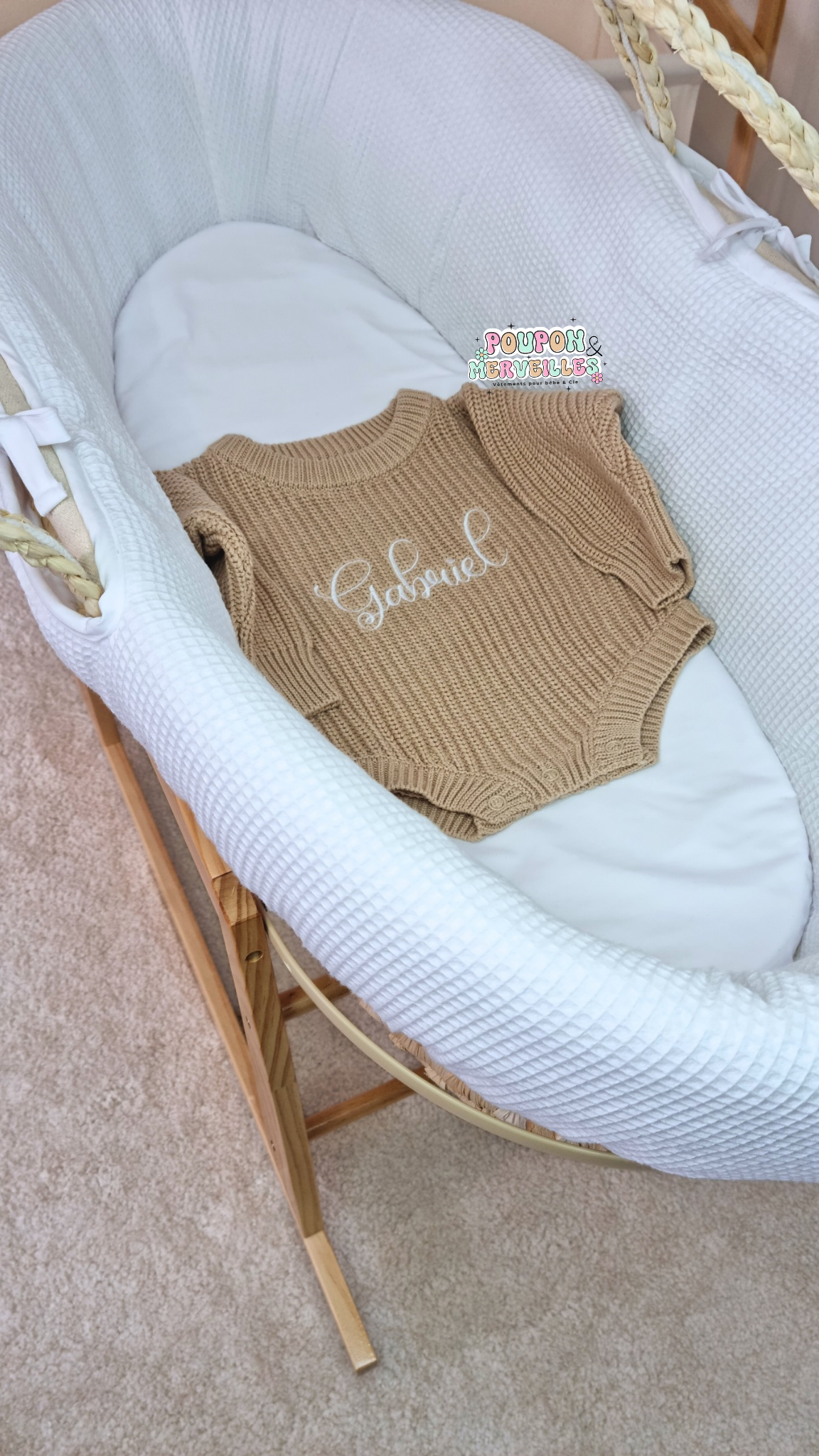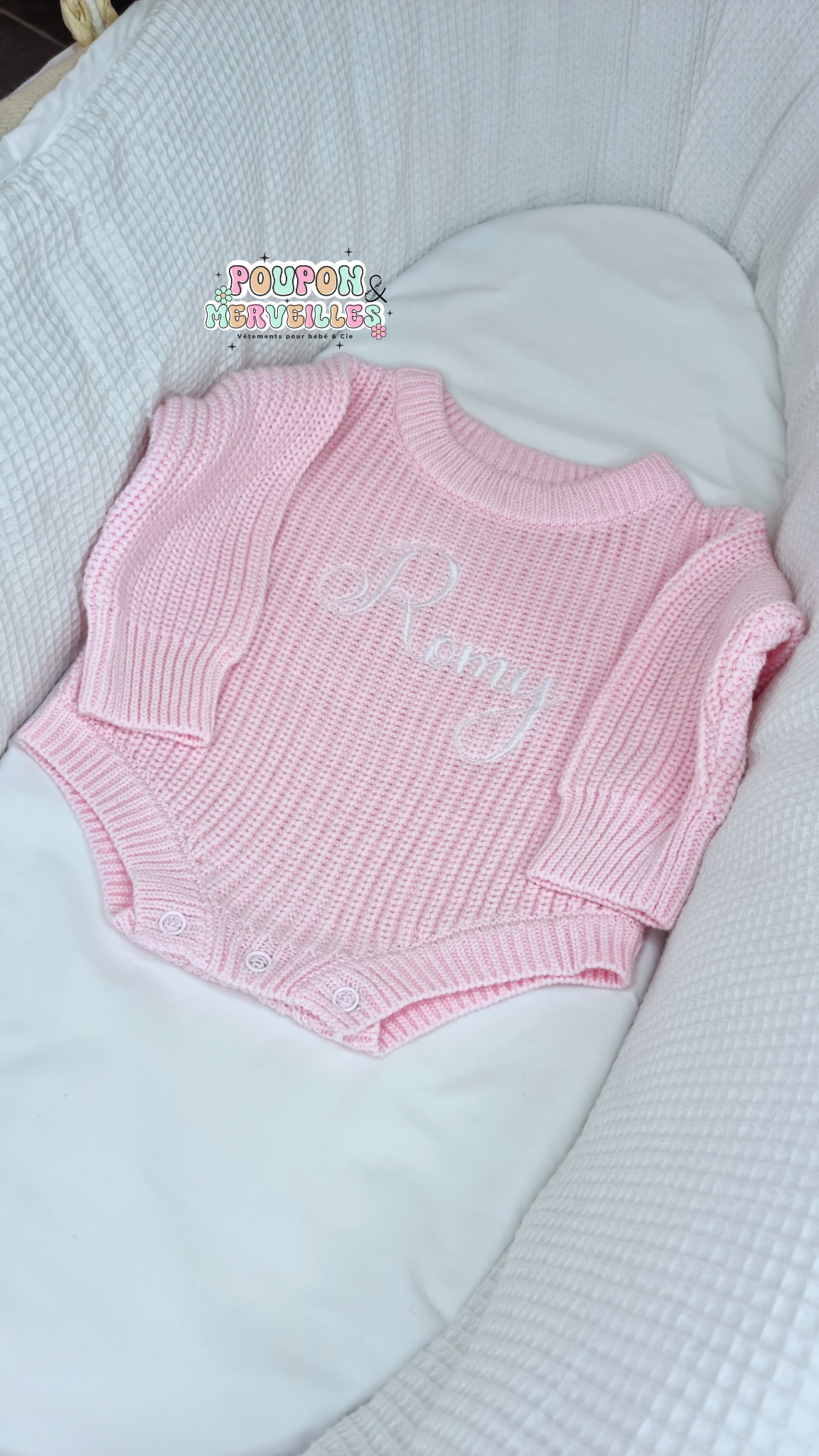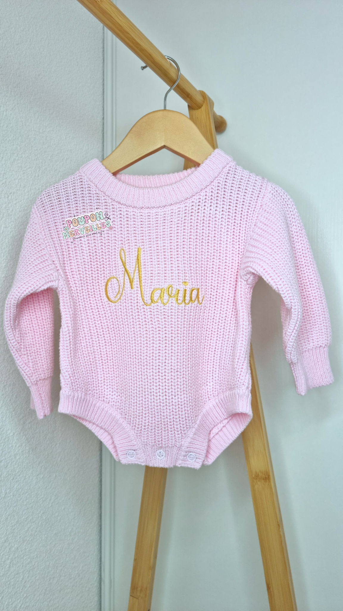 Craquez pour notre adorable barboteuse en maille personnalisée, un indispensable du trousseau de naissance 🤍