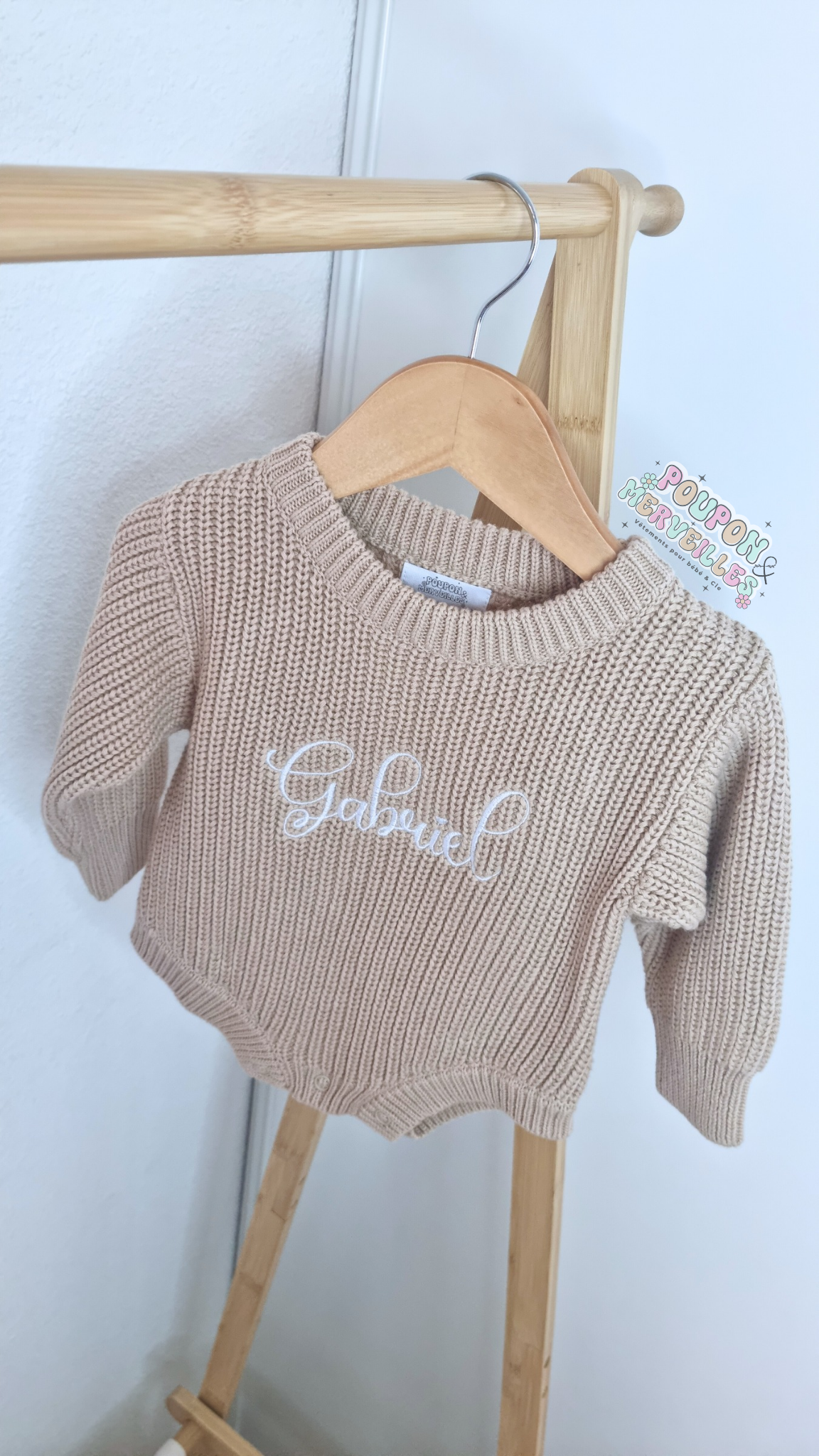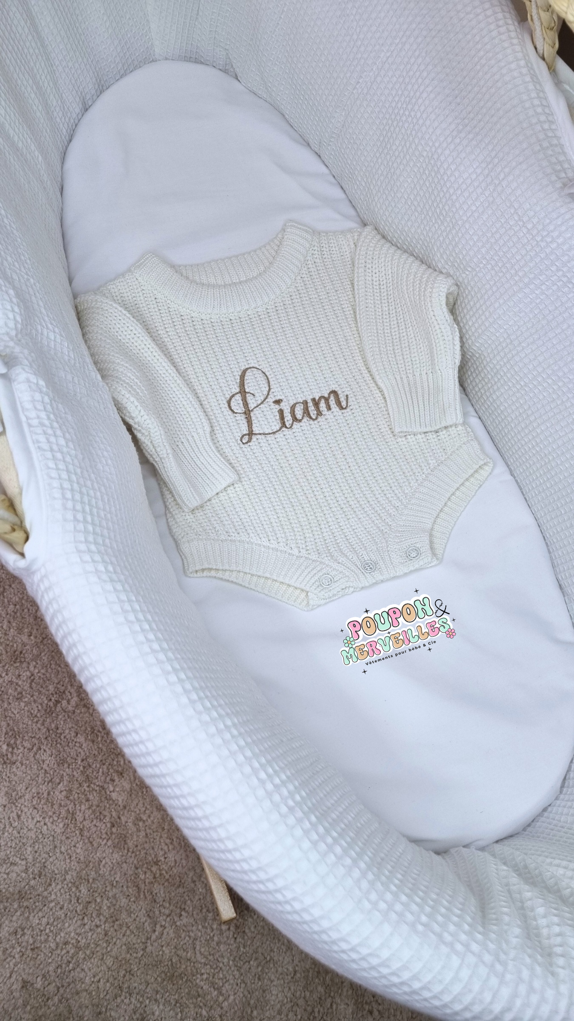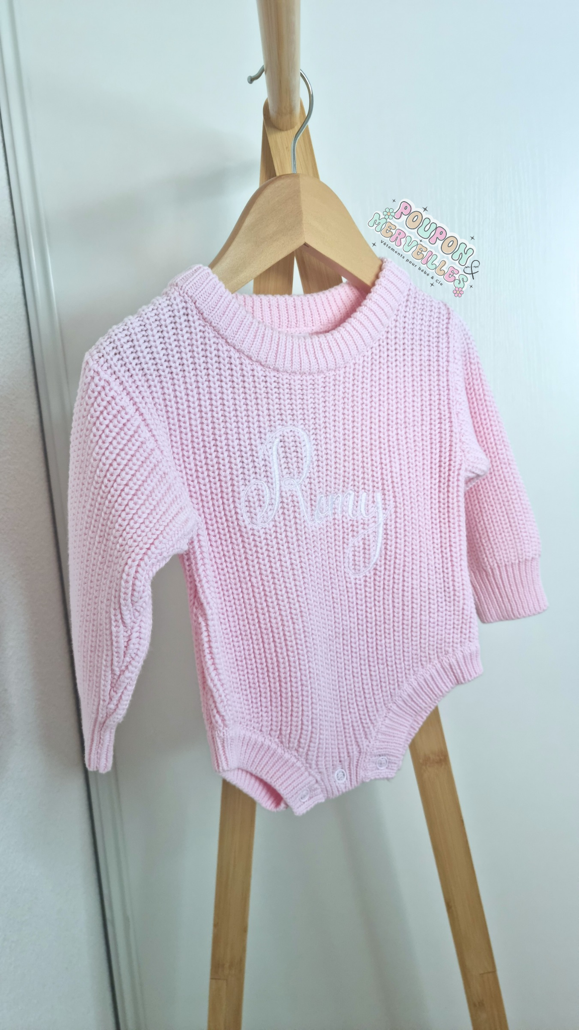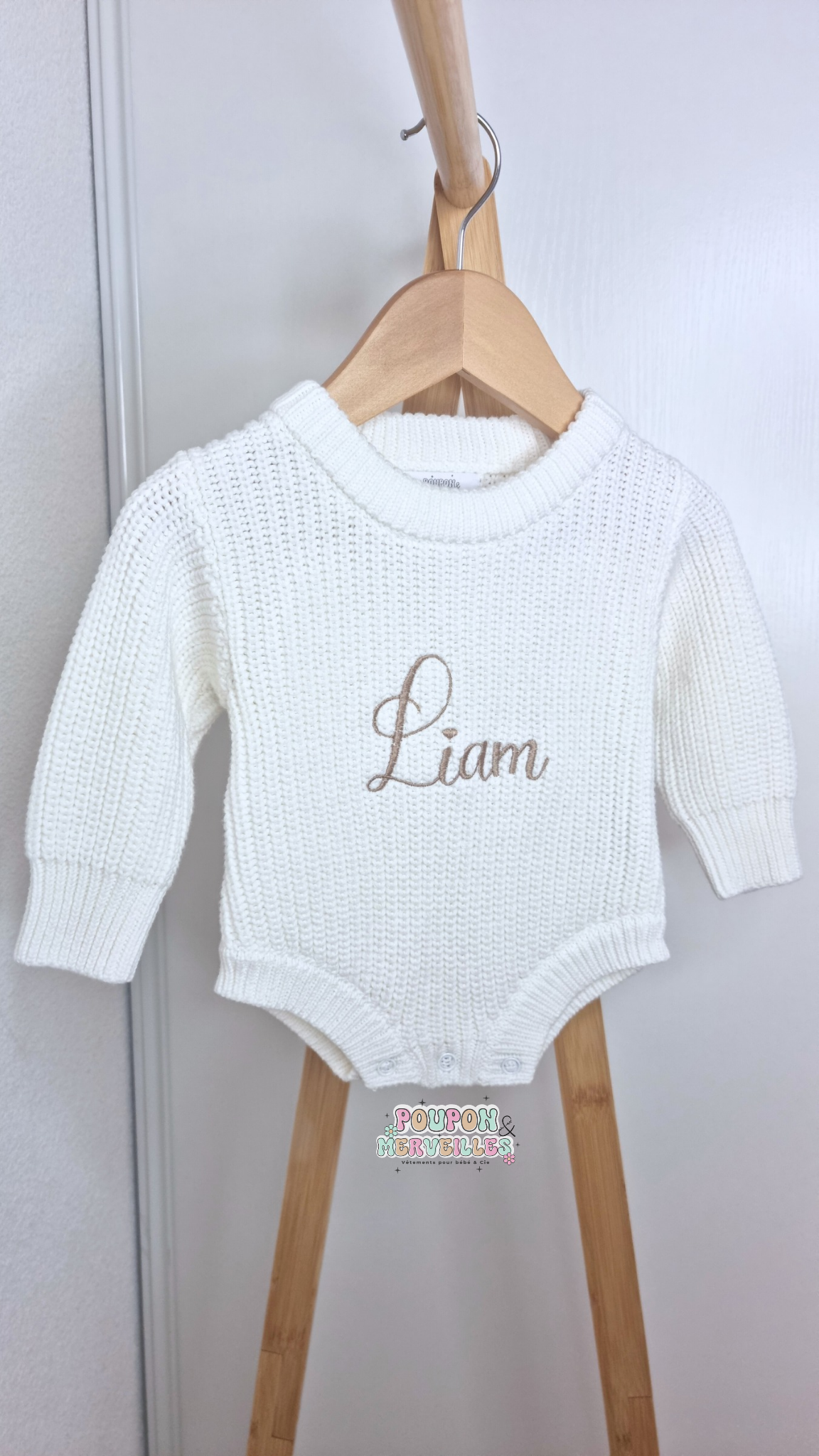 Craquez pour notre adorable barboteuse en maille personnalisée, un indispensable du trousseau de naissance 🤍