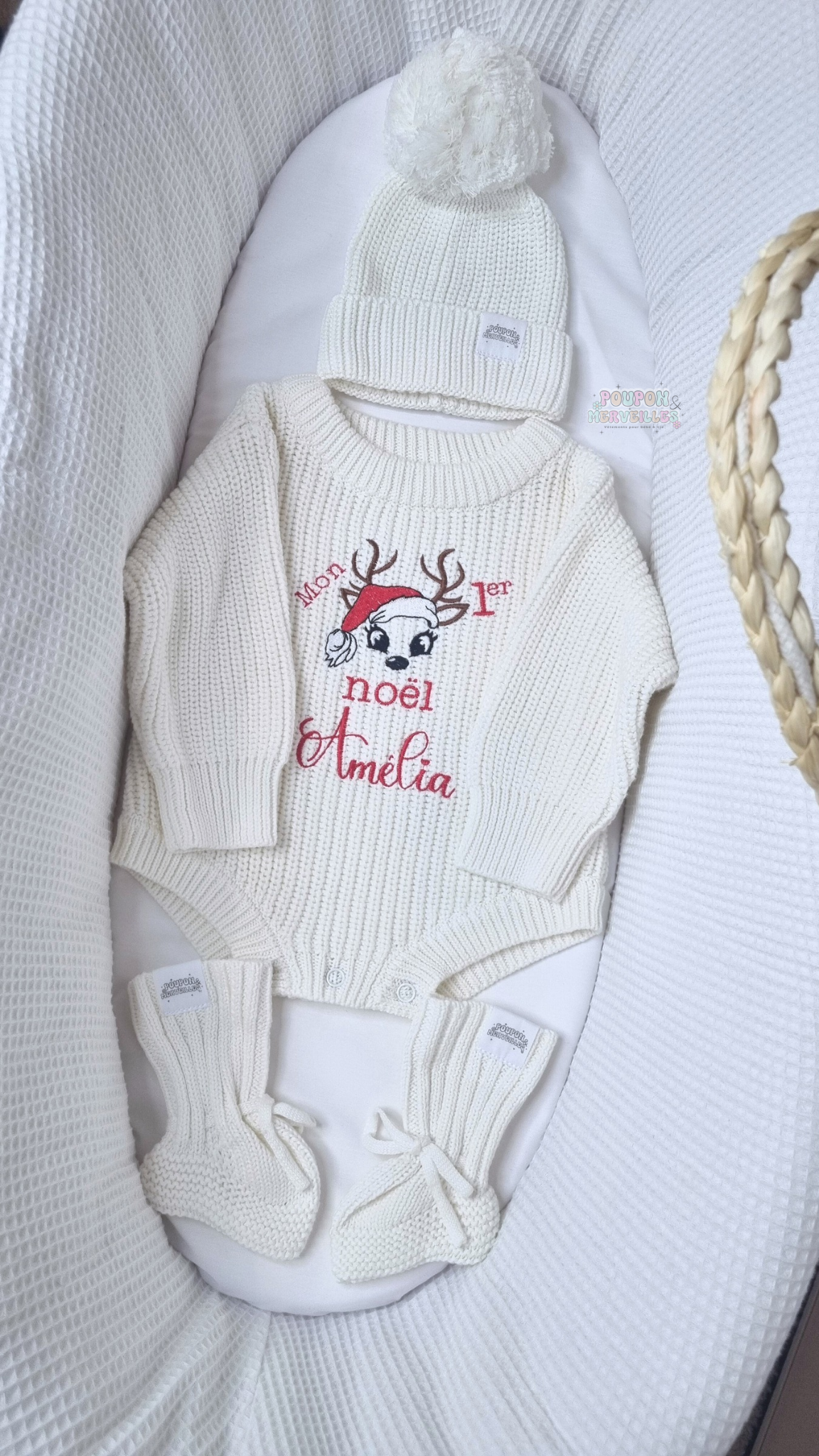 Célébrez le tout premier Noël de bébé avec un ensemble tricoté plein de tendresse.