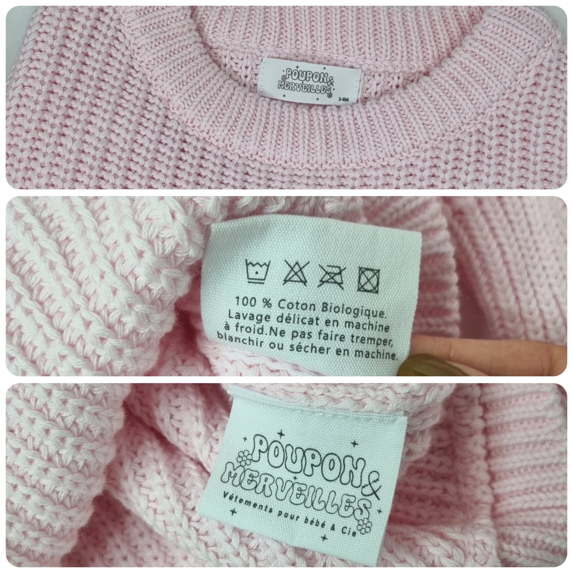 Matière : maille douce et respirante (adaptée à la peau des bébés, 100 % Coton Biologique.)
